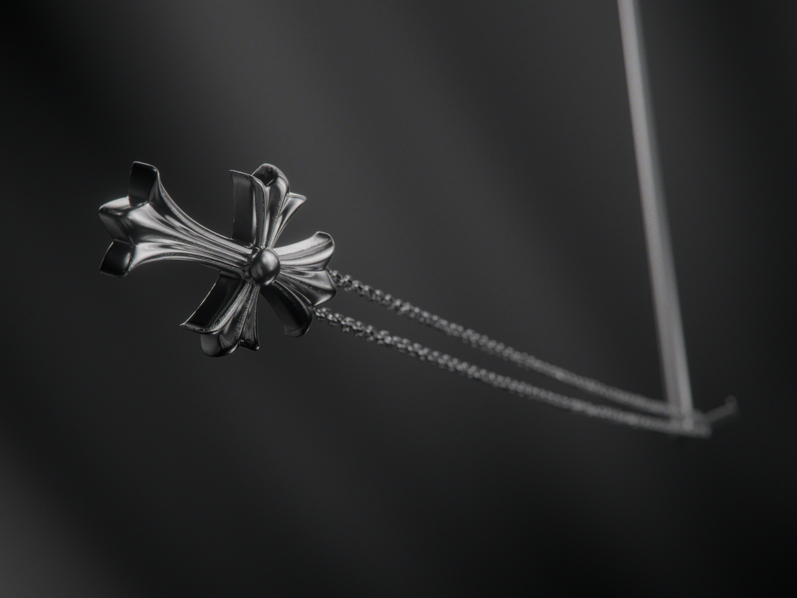 Chrome hearts is an American clothing and jewelry brand established in the late 1980s. They produce leather goods, home accessories, clothing and jewelry. Much of their solid sterling silver jewelry rose to prominence in the 2010s amongst street and youth culture. Their signature cross is the most recognizable symbol associated with the brand. This 3D render made in a combination of Blender & Houdini displays the brand's elegance and gothic style.